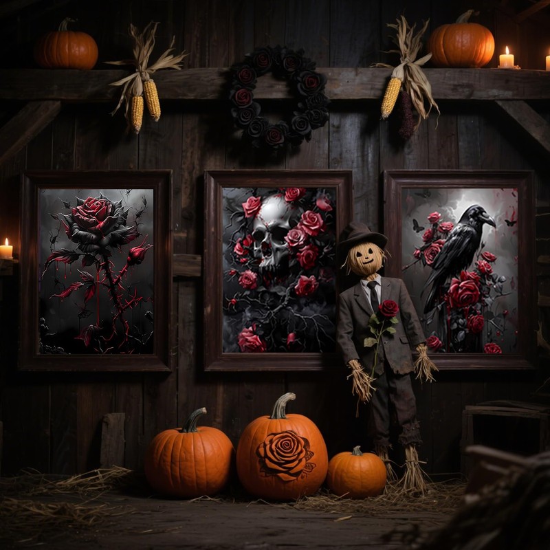 YULIDECO Paint by Numbers for Adults Beginners,Paint by Numbers Gothic 3-Piece Set,DIY Skull Acrylic Painting on Canvas for Home Wall Art Decor (12x16Inch)