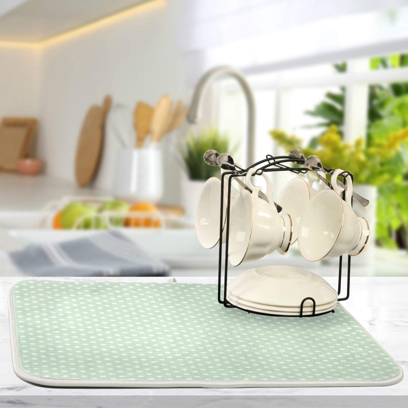 - Uso: alfombrillas de secado de platos para encimeras de cocina, alfombrillas de bar de café, alfombrillas de escurridor de platos y protectores, cojines que añaden encanto a tu oficina de cocina o mostrador de cafetería