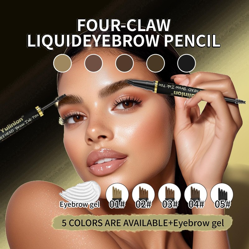 Yulinlon 2-in-1 Double Head Eyebrow Pen and Gel, Waterproof Brow Makeup with Dual-Ended Applicator (1#Light brown)