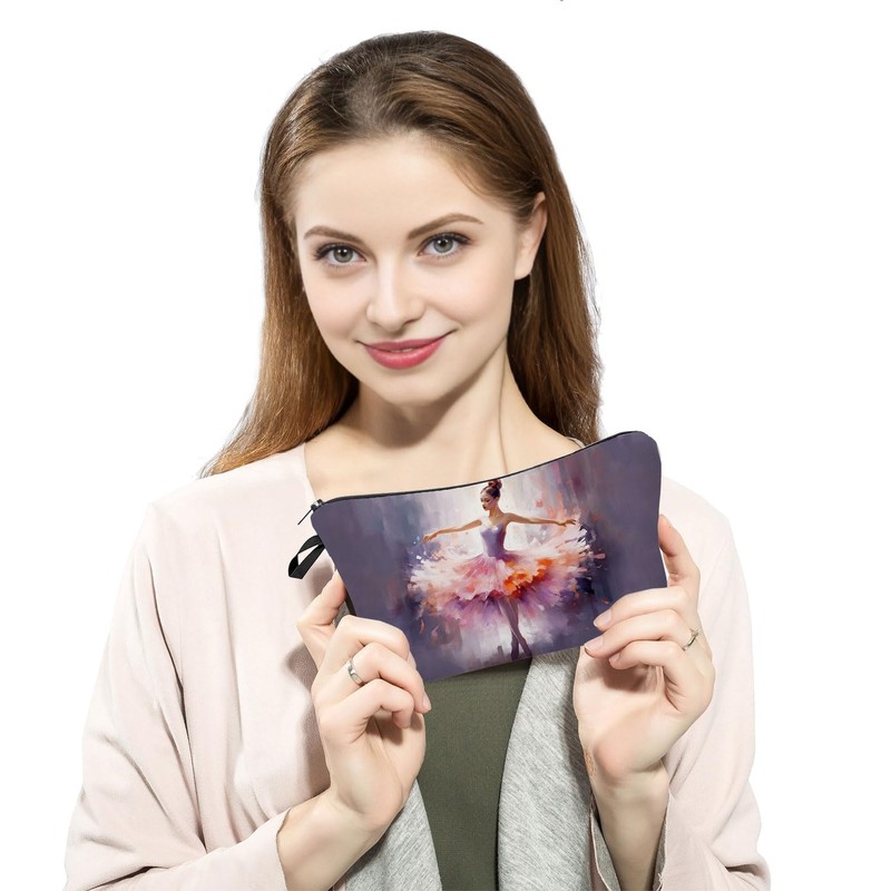 - 5.The Ballet Print Makeup Bag has plentiful usage scenarios. For example, you can take it as your toiletry organizer, stationery bag, coin purse, cellphone bag, medicine storage bag and so on. Different uses for you to find out!