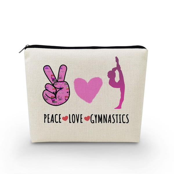YULUENZE Gymnastics Gifts Gymnastics Makeup Bag Gifts for Gymnastics Lovers Players Cosmetic Bag Gifts for Women Sister Friend BFF Bestie - Peace Love Gymnastics