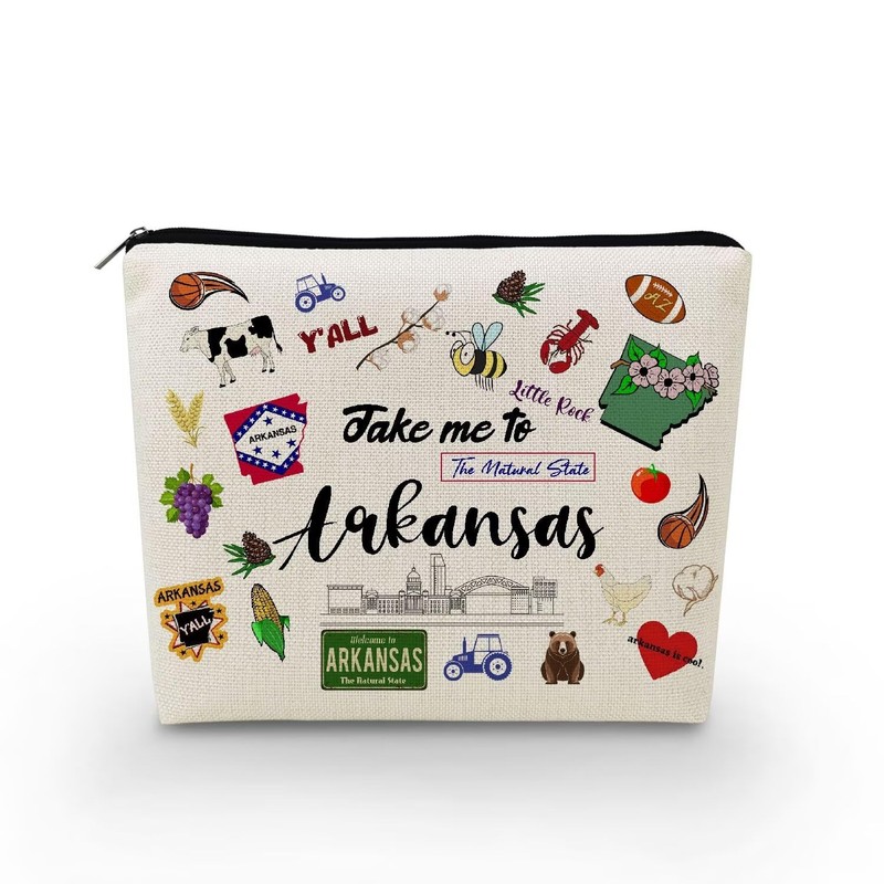 YULUENZE Take Me To Arkansas Makeup Bag Arkansas Travel Gift Small Canvas Organizer Bag with Zipper Arkansas Cosmetic Bag Travel Present for Women Friends Families