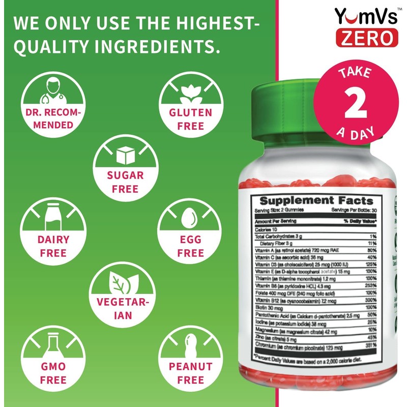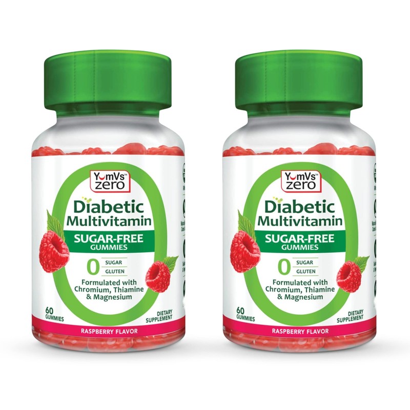 - YumVs Multivitamin Gummies | Sugar Free Supplement Vitamins for Women & Men | Chromium, Thiamine and Magnesium | Natural Raspberry Flavor Chewables - 60 Count - (Pack of 2)