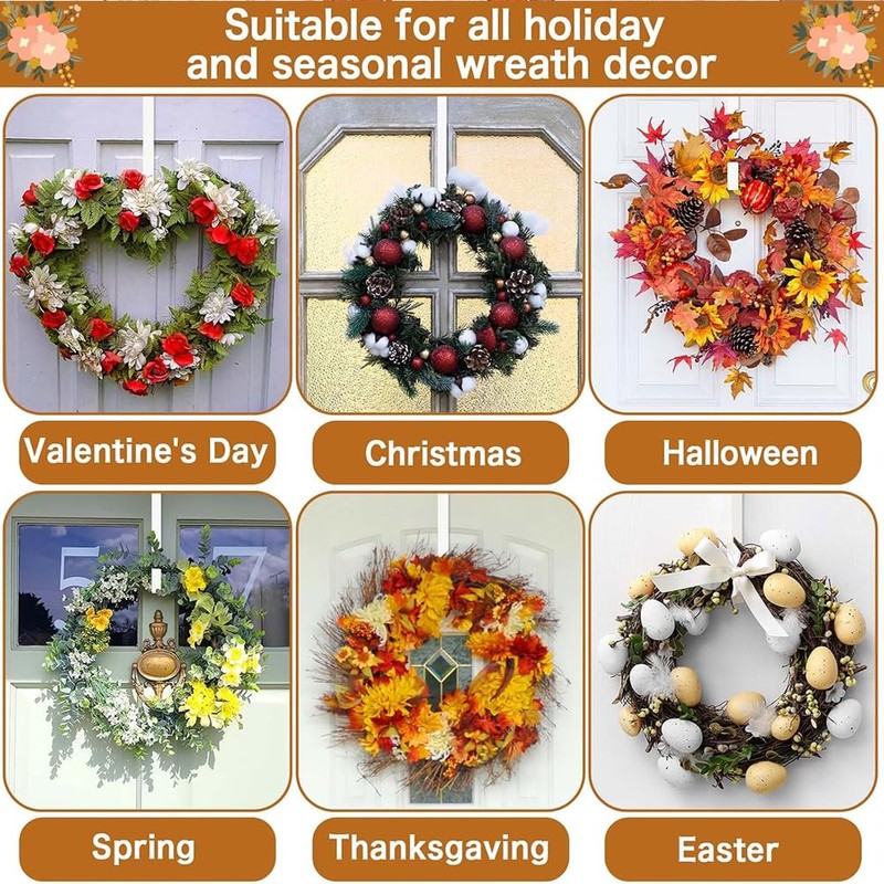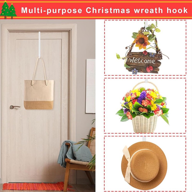 - The metal Christmas wreath hanger is suitable for displaying garlands and other holiday decorations, also to make full use of the unused door space to easily organize messy coats, clothes, bags, umbrellas, hats, etc.
