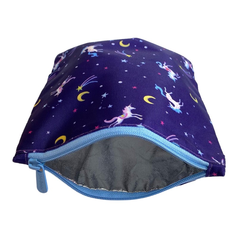 Yumbox Reusable Fabric Sandwich and Snack Bags (Set of 2 Unicorns and Cute Dog prints) for toddlers and kids' lunches. Zip Closure, Wide Opening, Washable, Food Safe, BPA Free, large 8x8 in.