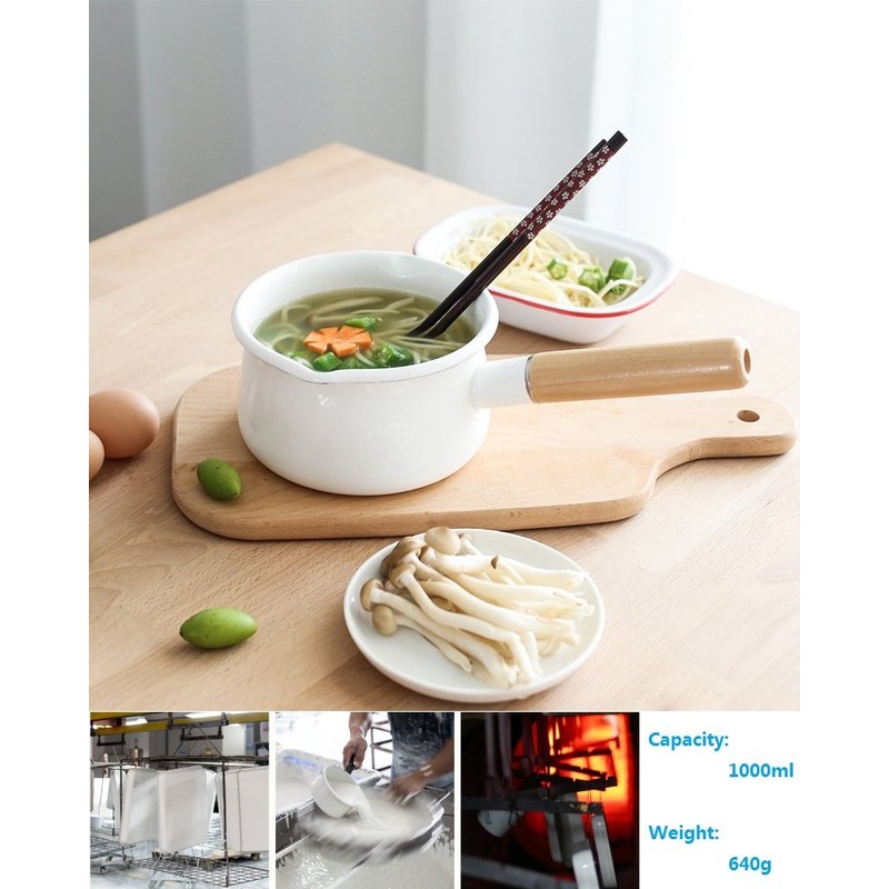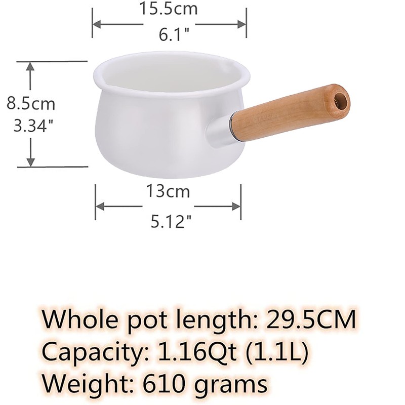 - 【 VERSATILITY APPLICATION SCOPE 】 - Ideal for warming up sauces, gravies, butter, milk, or melting chocolate and other domestic purposes. Main body/ porcelain fused onto heavy-gauge steel Handle/natural wood. Slight Bigger pot than the small one .【Capacity:】1.05qt (1L) 【.Size:】Diameter 6.1" X Height 3.34“ X Handle 6"【Weight:】21oz