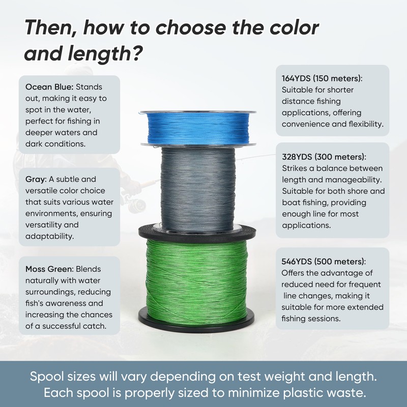 - Perfect Lengths for Any Trip: 164YDS (quick trips); 328YDS (shore/boat balance); 546YDS (extended sessions); 1093YDS (serious bulk spool). Less respooling, more fishing!
