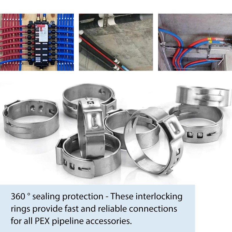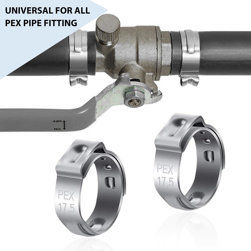 - Product Details: You will receive 50 x 1/2 Inch (17.5mm) PEX Clamp Pipe Clamp, 0.8mm Thickness. Fits 1/2 inch Pex pipe. Provides reliable, fast connections. Professional testing equipment is used to strictly test products to ensure that they meet standards.