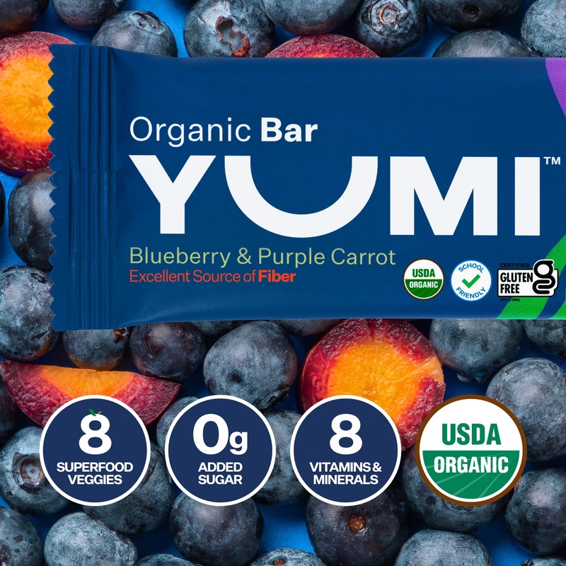 Yumi Organic Toddler Snack Bars (30 Count), Gluten-Free, No Added Sugar, 7+ Vegetables, Soft-Baked Crust, Healthy Snack Bars for Kids, School Safe for Kids Lunch Boxes (30, Blueberry & Purple Carrot)