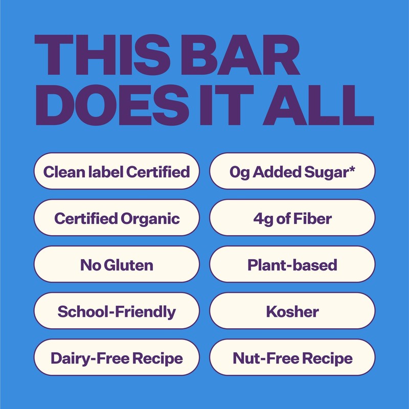 - SCHOOL SAFE SNACK: Discover our range of school-safe snacks that are perfect for kids of all ages. Our snacks are meticulously crafted to meet school guidelines and regulations, ensuring a worry-free option for lunchboxes and snack times. These bars are made with a dairy-free, soy-free, peanut-free, gluten-free recipe. Our organic bars are made with a peanut-free, gluten-free and dairy-free recipe.