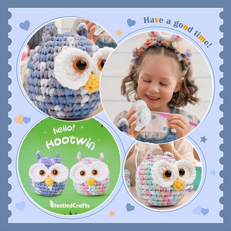 YUMILI Beginners Crochet Starter Kit, Crochet Set for Beginners, Animal Crochet Package Complete Amigurumi Starter Set with Video Tutorials, DIY Crochet Kit for Kids Adults, Gift for Craft Lovers (Owl