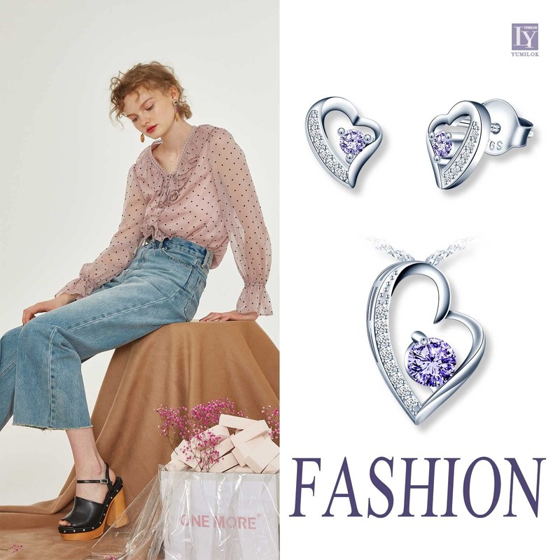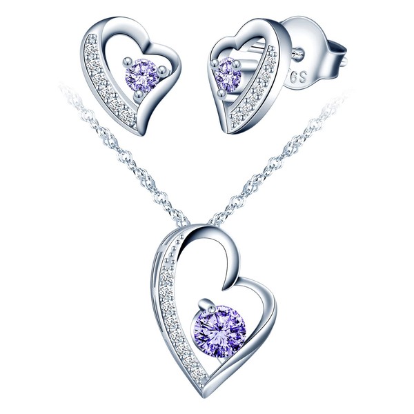 Yumilok Jewellery Set Women's 925 Sterling Silver Necklace & Earrings Set, Heart Pendant with 45 cm Chain and Stud Earrings with Blue Zirconia for Girls, Sterling Silver Sterling Silver Zirconia,