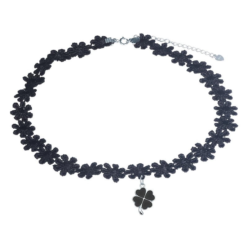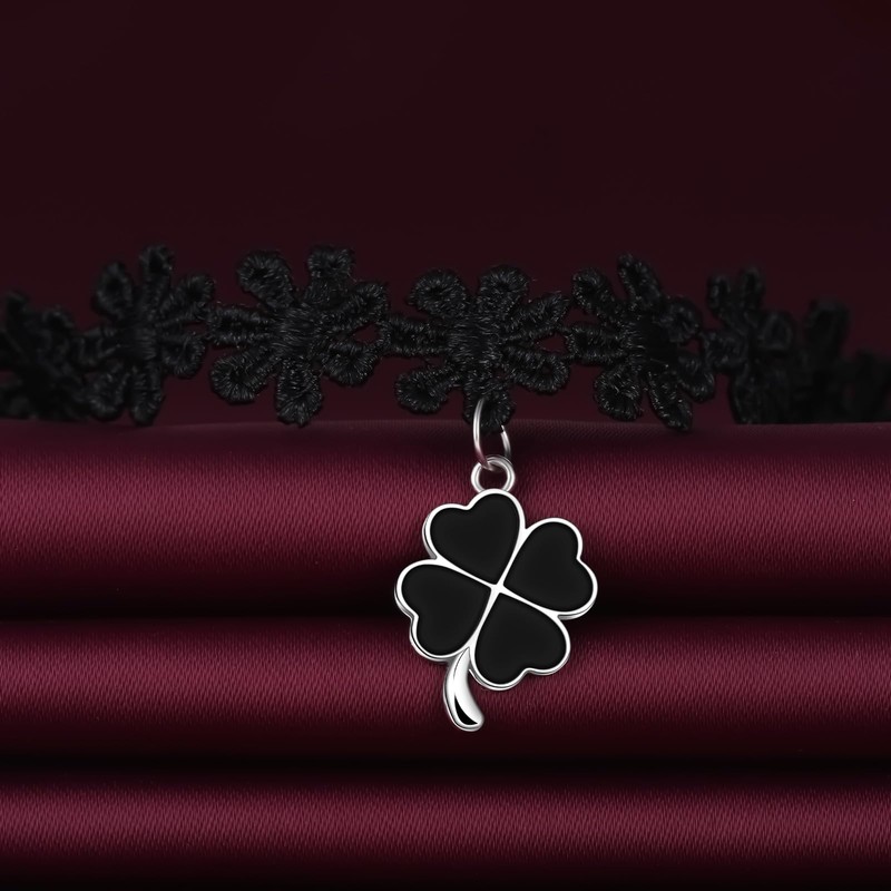 Yumilok Women's Necklace 925 Sterling Silver Choker Black Clover for Women, Sterling Silver