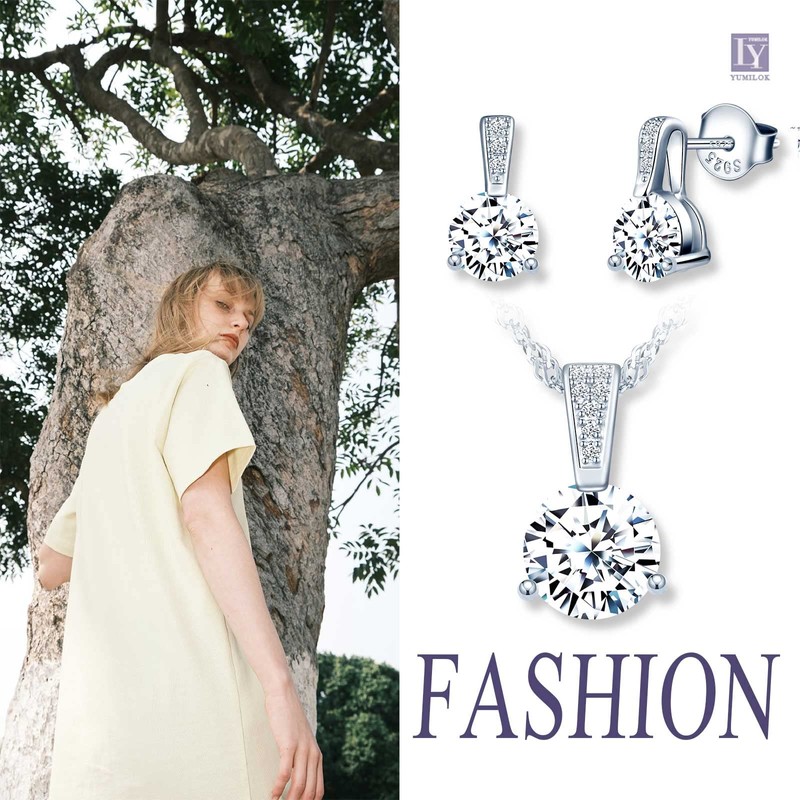 Yumilok Women's Necklace Earrings Jewellery Set Women's Necklace and Earrings 925 Sterling Silver with Zirconia Gifts for Women Girlfriend Mum, Sterling Silver Sterling Silver Zirconia, Cubic Zirconia