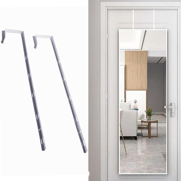 YUMMIS 1Pair White Over The Door Mirror Hanger, Adjustable 4-Level Hanger Brackets Set Door Depth Heavy Duty Hook (Not Included Mirror)