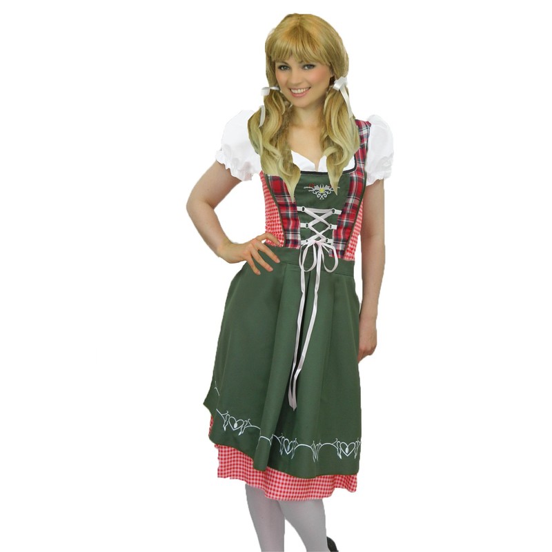 - Authentic Beer Costume : Oktoberfest dress with white peasant style top, green dress with tartan or gingham trim and apron capturing the essence of a Bavarian dirndl dress for an ideal maid outfit