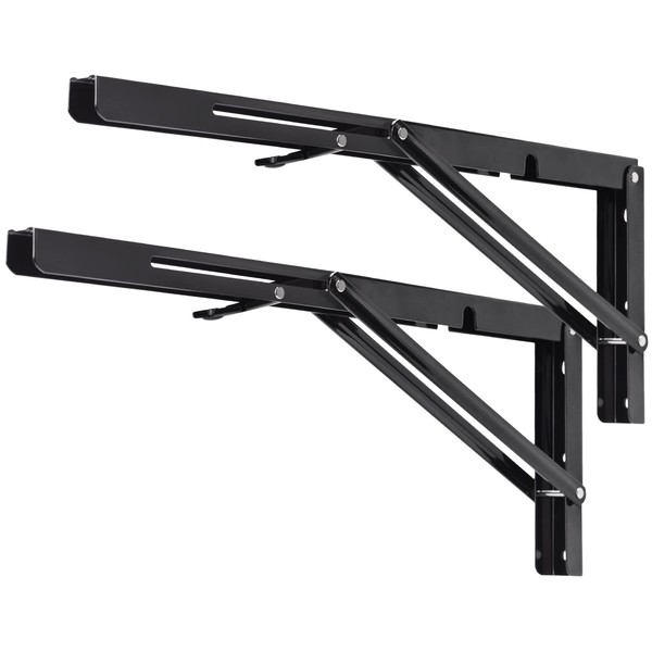 YUMORE Folding Shelf Brackets, 18 Inch Heavy Duty Collapsible Shelf Bracket, Black DIY L Bracket for Workbench Folding Table Hinge, Max Load: 330lb, 2 Pack