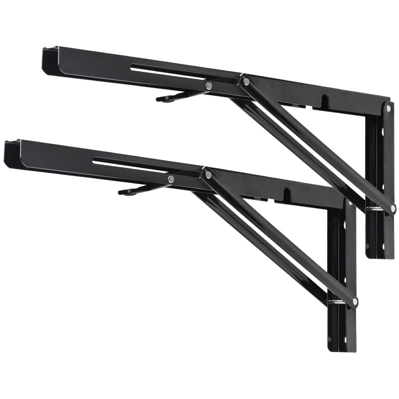 - Sturdy & Heavy Duty. Made of high-quality metal, this 18 inches black folding shelf bracket has a smooth surface, which is not easy to scratch, and can resist daily scratches and corrosion, ensuring durability and abrasion resistance. The maximum load-bearing capacity is up to 330lb.