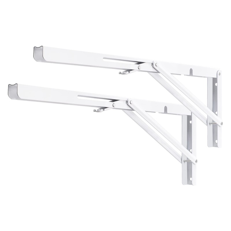 - Sturdy & Heavy Duty. Made of high-quality metal, this 20 inches white folding shelf bracket has a smooth surface, which is not easy to scratch, and can resist daily scratches and corrosion, ensuring durability and abrasion resistance. The maximum load-bearing capacity is up to 330lb.