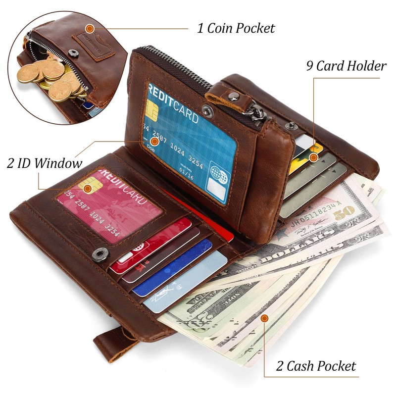 - ✿Tri-fold Bifold Extra Capacity Design:Yumsur Mens wallets with 1 coin pocket detachable, 2 large cash pockets ,9 card holdes, 2 Transparent slots for ID card/driver's license/photo windows. This pocket wallet meets all your daily needs.