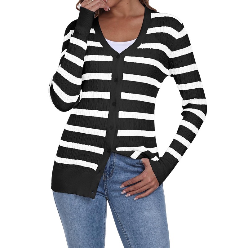 - 【Features】striped Design, Casual knitted cardigan, V-neck, long sleeve, button down Open front. This classic basic cardigan sweaters for women with a fitted design that flatters your figure.