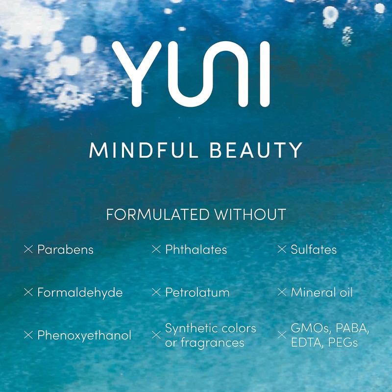 - MINDFULLY MADE: YUNI Beauty products are made with skin-loving ingredients, plant-based, vegan, cruelty-free, gluten-free with no parabens, sulfates, phthalates, sodium lauryl/laureth sulfates, mineral oil, synthetic colors or fragrances. Tested on lucky humans (never on animals), the organic, natural ingredients are consciously and sustainably sourced.