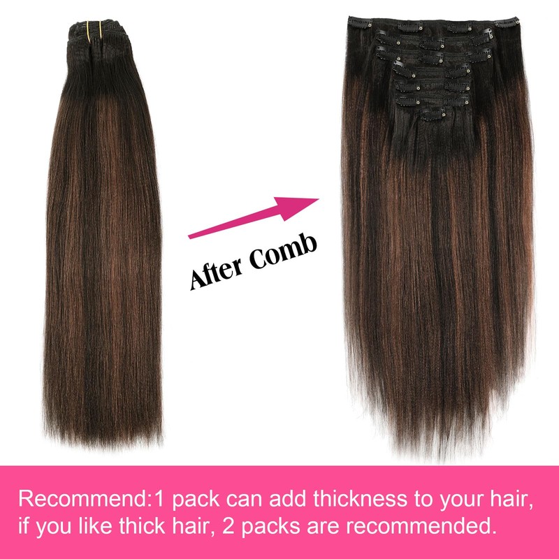 - 【Yaki Straight Clip in Hair Extensions Real Human Hair】:100% remy human hair extensions, the hair is carefully selected and processed to ensure that it is soft, shiny, and tangle-free. Is built to withstand daily wear and tear. With proper care and maintenance, a set of clip hair extensions can last for months, making it a cost-effective investment in your beauty routine.