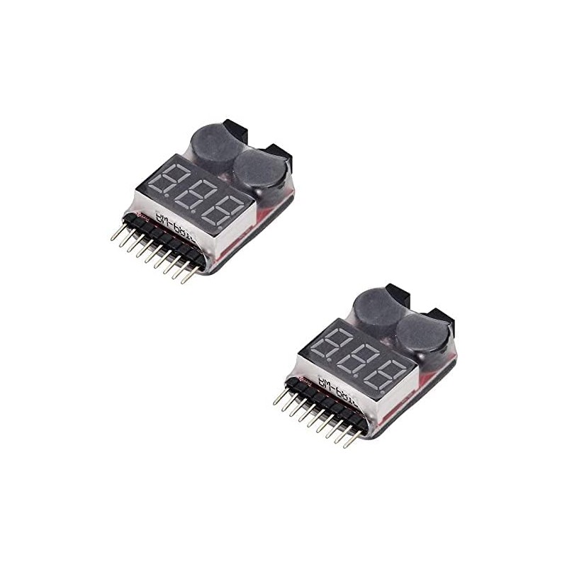 - Keep your batteries in check, measure all LiPO from 1 to 8 cells. With double high-power buzzer for dead battery. Alarm audible even on long distances (drone in flight).