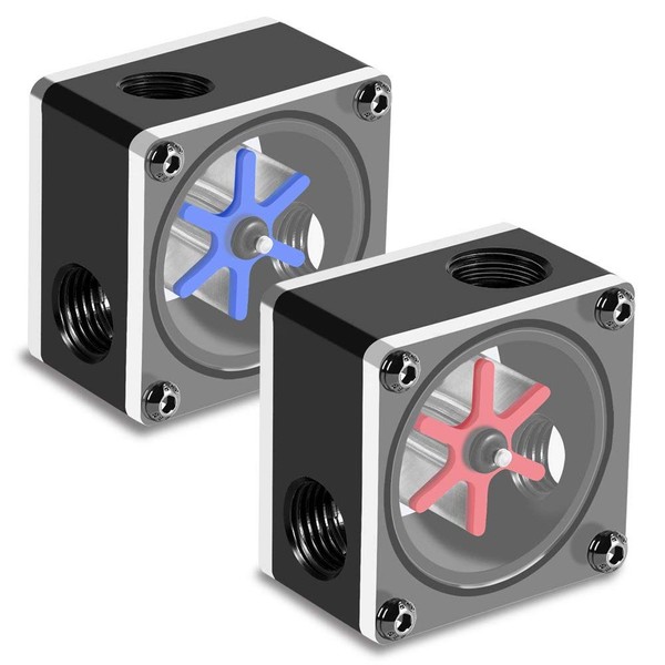 Yunir Water Flow Meter, 6 Impeller 3 Ways Flow Meter Indicator G1/4 Thread for PC Water Cooling System