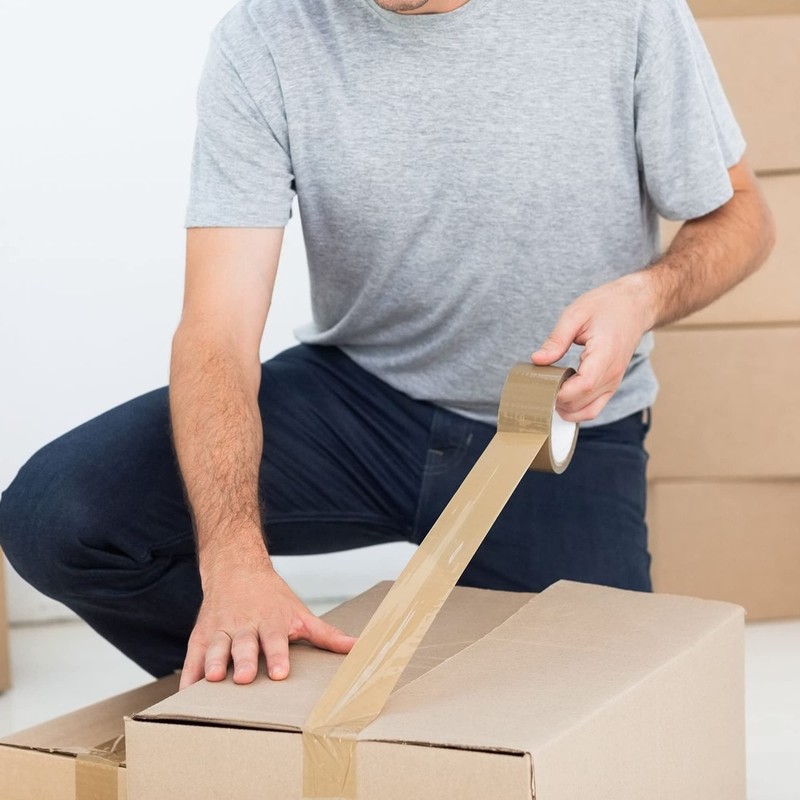 - This Yunju Brown Tape is Thick strong has Sticky and safe seal adhesive Perfect for packing boxes, moving card board boxes, cartons, and other cardboard boxes or any other small-large packaging.