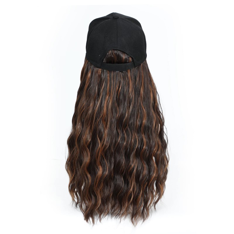 Yunkang Baseball Cap Wig Long Natural Wavy Hair Extensions With Hat Heat Resistant Synthetic Fiber Hairpieces Adjustable Wig for Women Girls Mixed Brown color (B-M Brown 2)