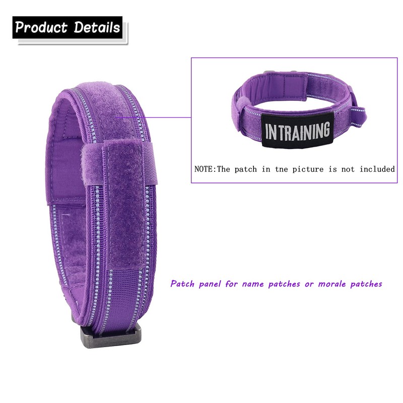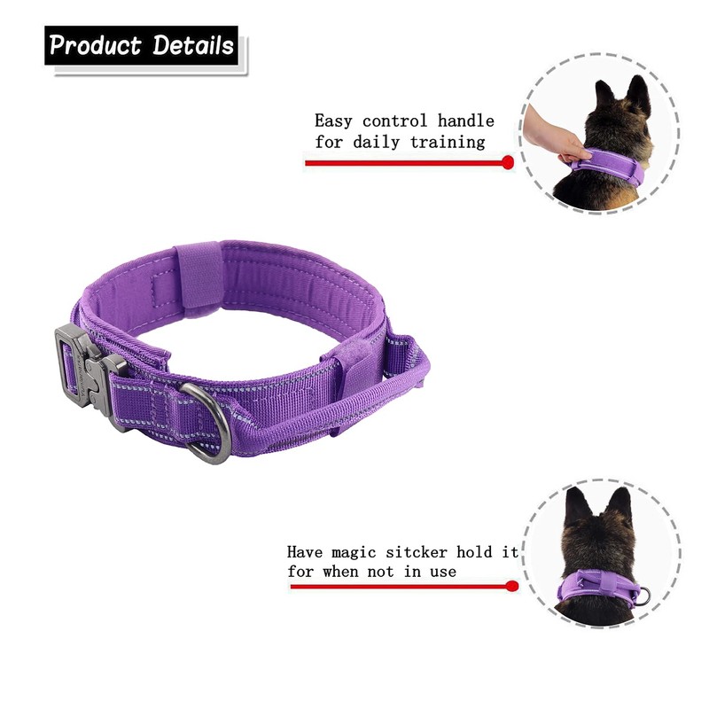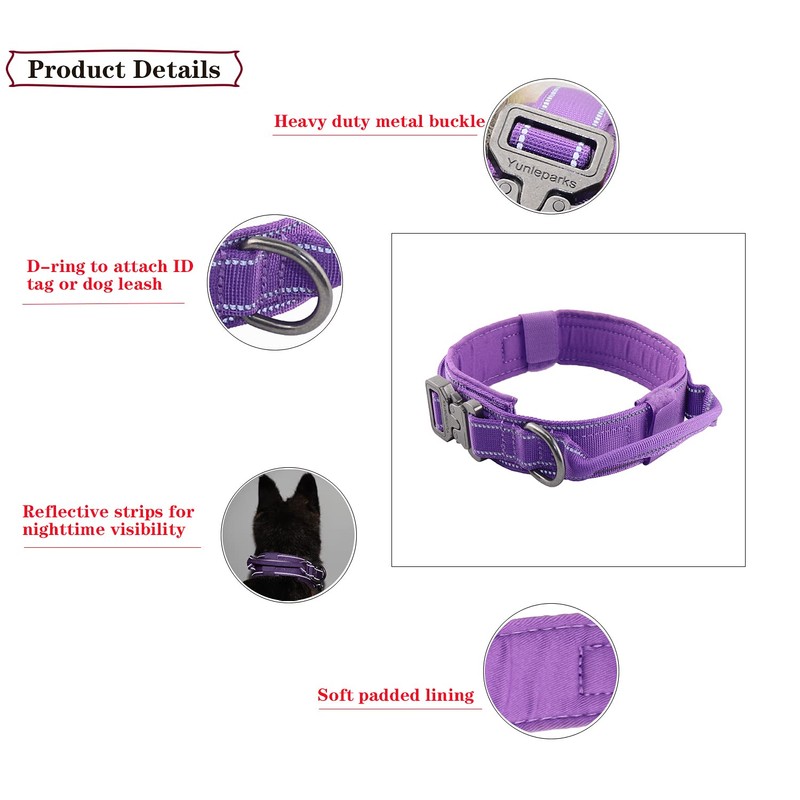 Yunleparks Tactical Dog Collar Heavy Duty Dog Collar with Metal Buckle and Control Handle for Medium Large Dogs Training (Purple, Medium (Pack of 1))