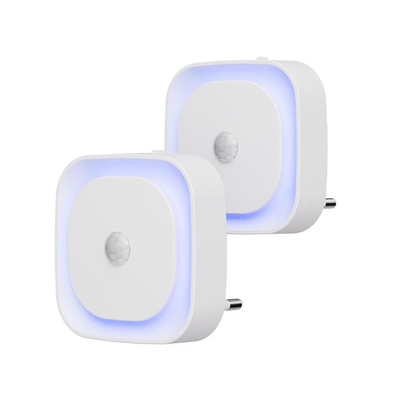 YUNLEX Pack of 2 Night Light Socket with Motion Sensor & Twilight Sensor, 3 Sensor Modes, Dimmable Night Light, Blue Night Light for Children, Bathroom, Bedroom