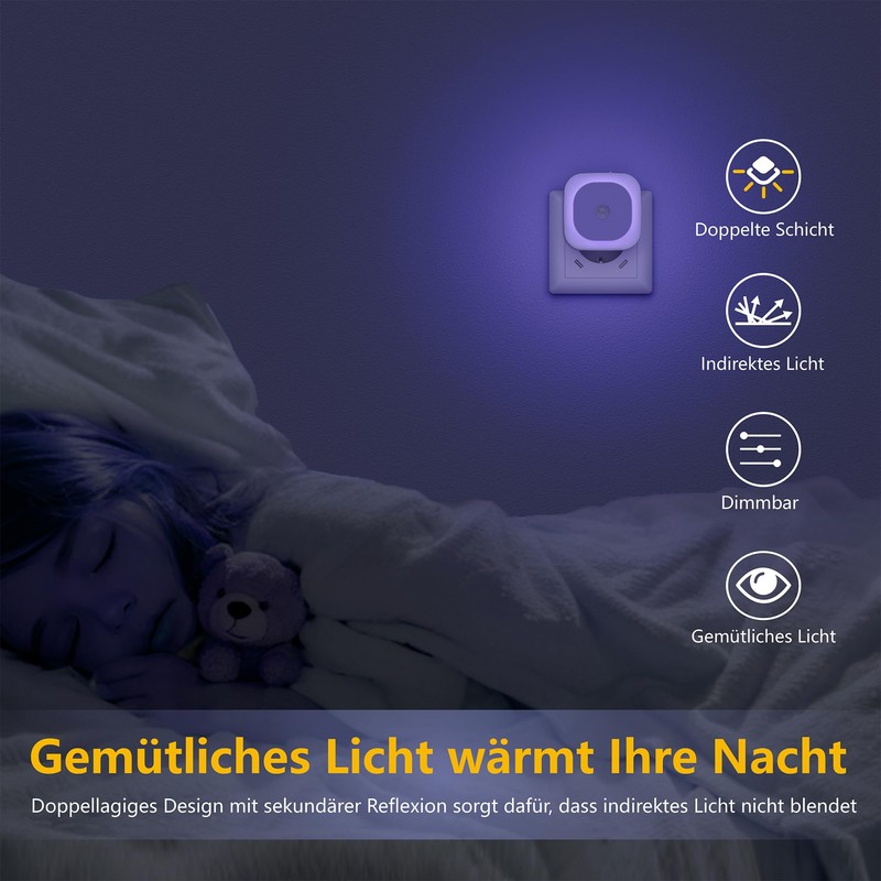 - ??Lichtsensor und Bewegungssensor Modus??: Im Lichtsensor-Modus schaltet sich das Nachtlicht tags??ber automatisch aus und schaltet sich nachts ein, es ist kein zus?tzlicher Betrieb erforderlich, was es ideal f??r Schlafzimmer oder Treppen macht. Im Bewegungssensor-Modus schaltet sich das bewegungsaktivierte Nachtlicht in der Dunkelheit automatisch ein und schaltet sich dann nach 60-Sekunden Inaktivit?t automatisch aus, um Energie zu sparen, geeignet f??r Bereiche, in denen eine konstante Beleuchtung nicht erforderlich ist.