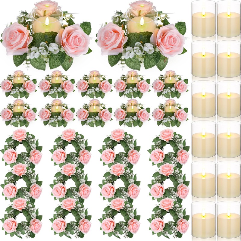 You will get 12 artificial rose rings and candles for decoration, the candle ring garlands are not only durable, but also keep the same shape for a long time without fading.
