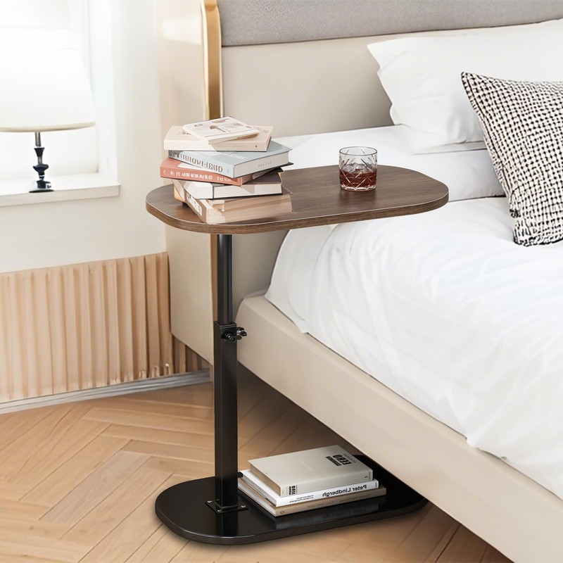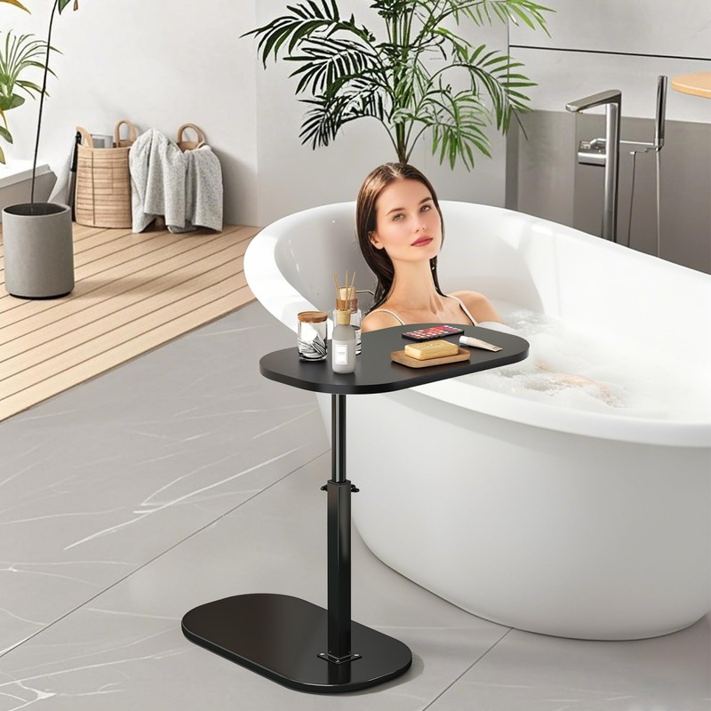 - 【Multi Functional C table】This beautiful and practical small C table is almost suitable for every corner of your home. It is very suitable to be placed next to the bed and couch as a coffee table, snack table, or as a temporary laptop stand table or TV tray table. When the table board rotates 90 degrees, you can also place it next to the bathtub to place your shower products. This multifunctional adjustable table is a must-have for your home life and an ideal gift for birthdays, Christmas, or housewarming!