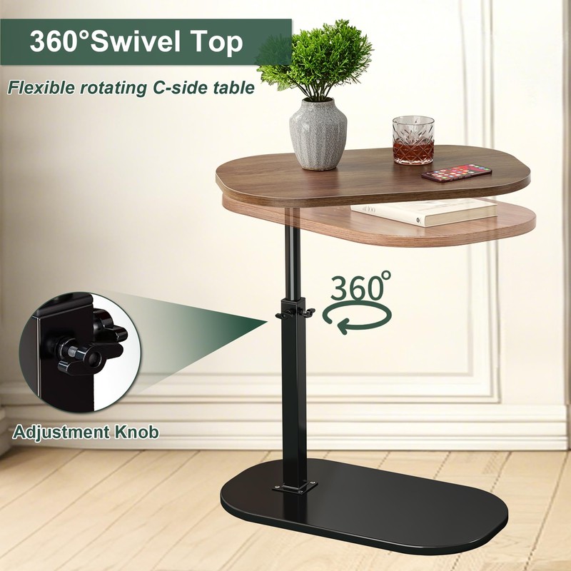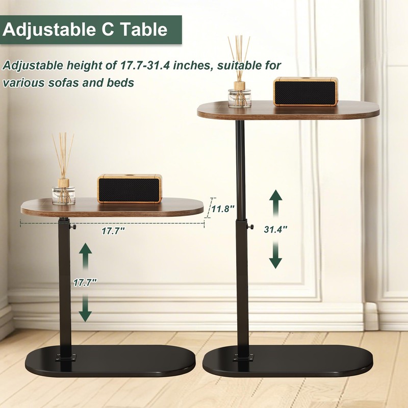 - 【Adjustable C Table】This modern style small C table features a height adjustable design that can be adjusted from 17.7 " to 31.5 " according to your usage needs. At the same time, the top tabletop can also swivel 360 °, allowing you to adjust the desktop to be perpendicular or parallel to your sofa arm without moving the base, providing great flexibility and convenience