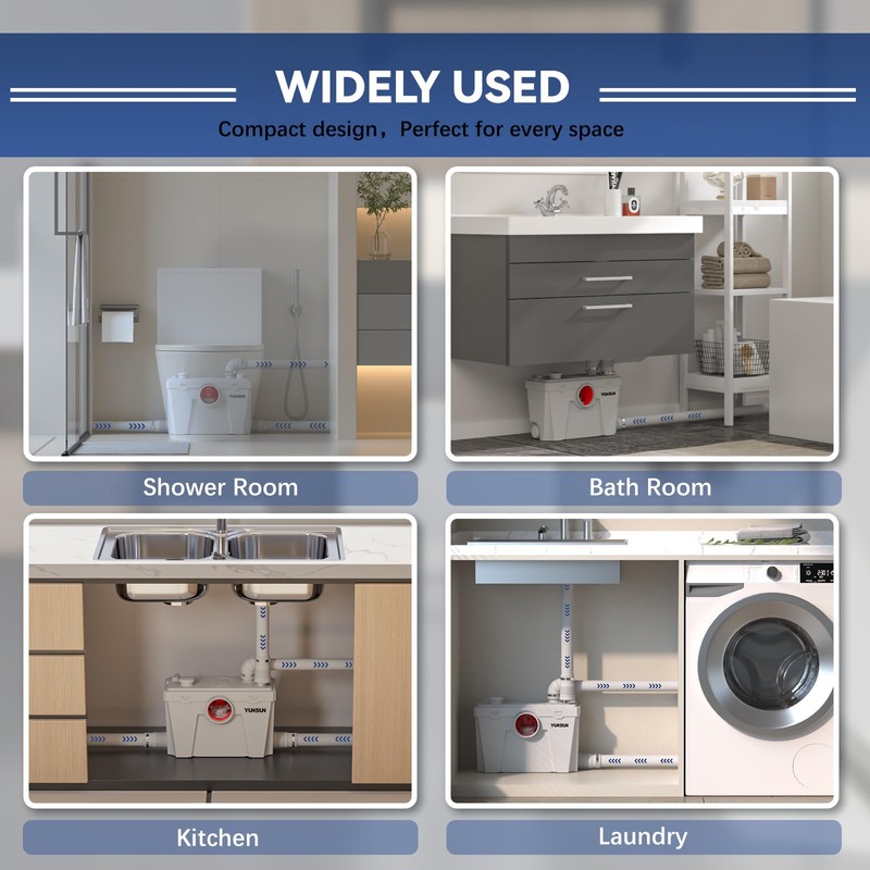 - Low Noise: YUNSUN macerating pump with only 45 dB noise and powerful decontamination capability, which is much lower than others and will not interfere with daily life and sleep during operation.