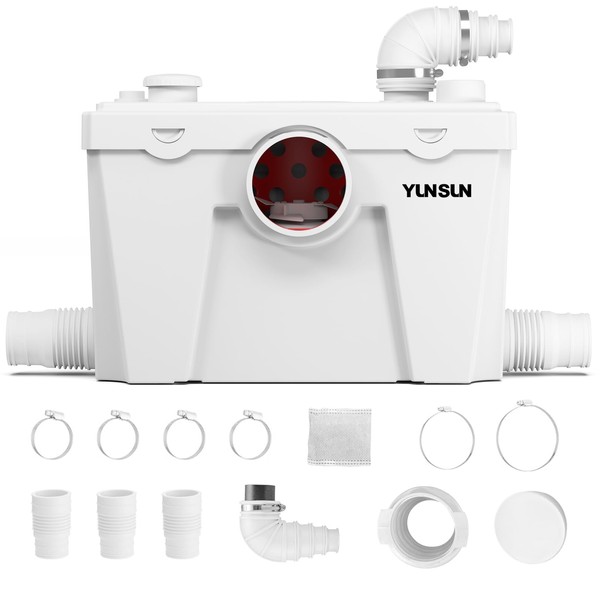 YUNSUN 750W Macerator Pump, Macerator Pump for Basement, with Automatic Drain & Delay Feature, Upgraded 2 Outlets/5 Inlets, Toilet Macerating Pumps for Basement, Sink, Toilet, Laundry, Kitchen