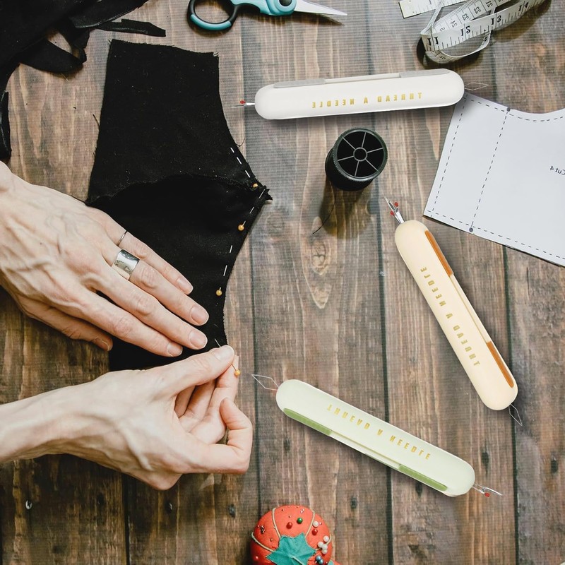 - 3 coloured 2-in-1 tools: includes 1 each of brown, beige and green sewing tools - assorted colours for different sewing projects