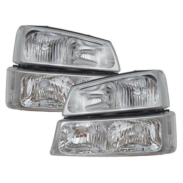 YUNZHIYI Headlight Assembly Replacement for 2003-2006 Chevy Silverado Compatible with 07 Silverado Classic / 03-06 Avalanche with Bumper Lights (Chrome Housing with Clear Reflector)
