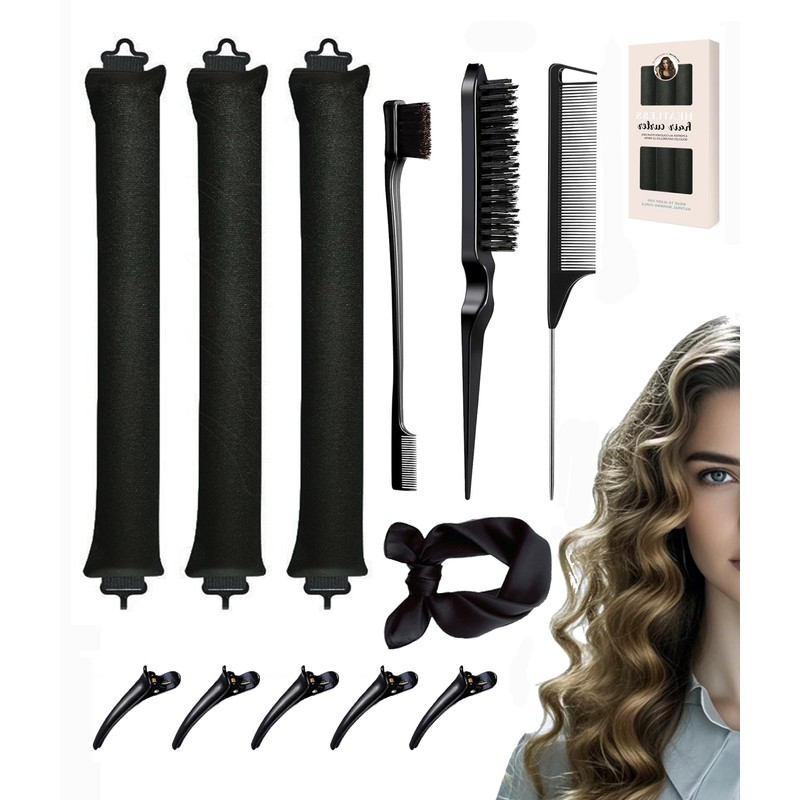 - 【El paquete incluye】El set incluye 3 rizadores, 3 peines, 1 pañuelo de seda y 5 pinzas para el pelo.