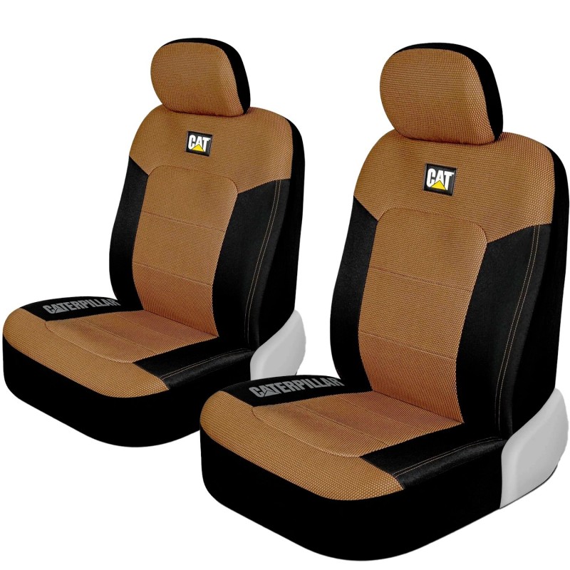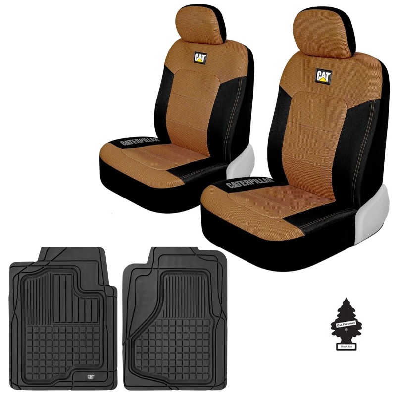 Caterpillar Automotive Interior Protection Bundle – Front Seat Covers and All-Weather Floor Mats for Cars, Trucks, and SUVs