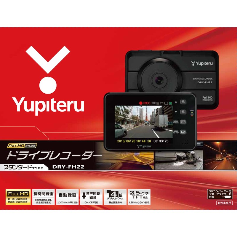 Yupiteru DRY-FH22 Continuous Recording Dash Camera, 2.5-inch LCD Included, 2 Megapixels, Full HD Image Quality