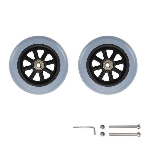 Yuqim 2 Pcs 5 Inch Replacement Wheels for Rollator Walker Wheelchairs Walker Wheels Replacement Drive Rollator Wheels Parts(Grey)