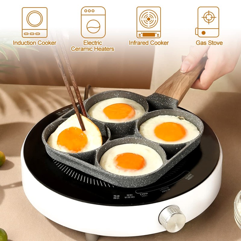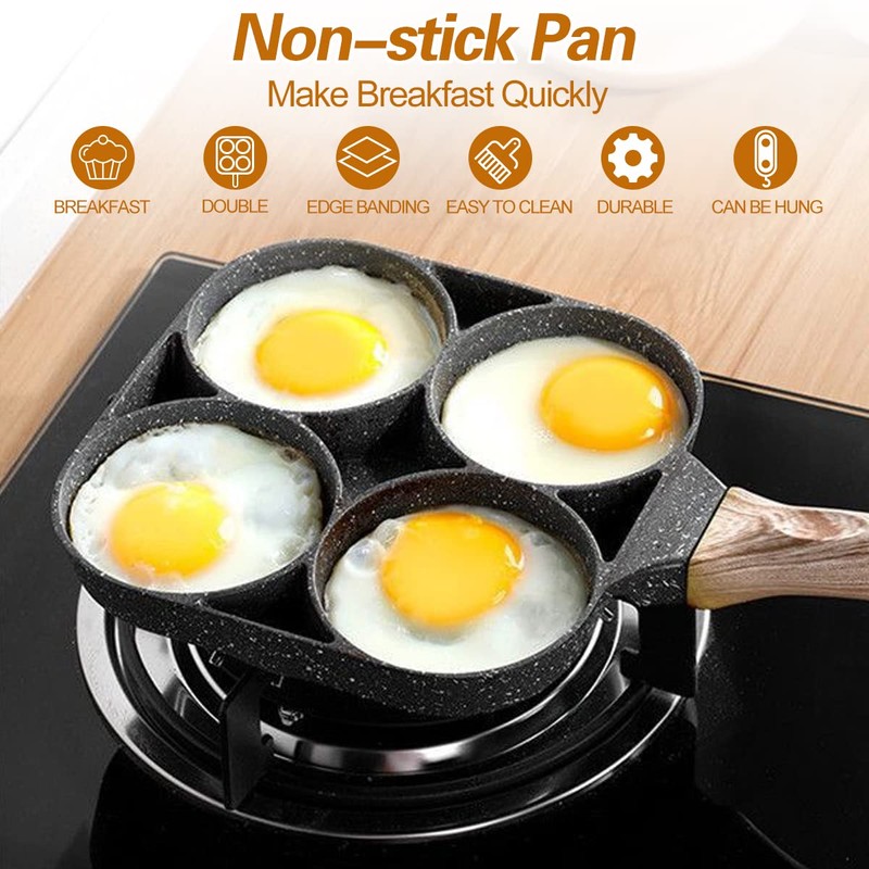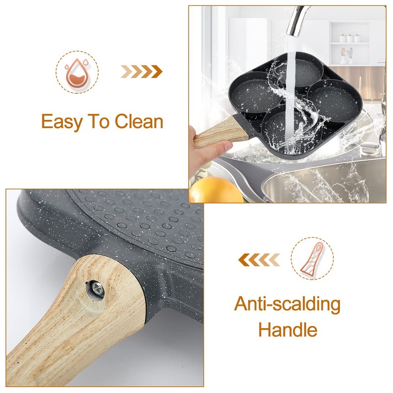 - 4-hole design: unlike ordinary frying pans, our fried egg pan has a four-hole design, which allows four eggs or different burgers or four different foods to be fried at the same time to meet the daily breakfast needs of ordinary families. The 4 cavity design allows you to fry 4 eggs at the same time for your husband and children.