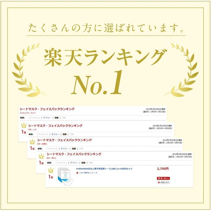 YURAHADA Fluffy Eye Wrinkles Pack Concentrated Beauty Essence Sheet Nasolabial Line Placenta Hyaluronic Acid Formulated Sensitive Lotion Dry Skin Fluctuation Skin (20 Pieces, 10