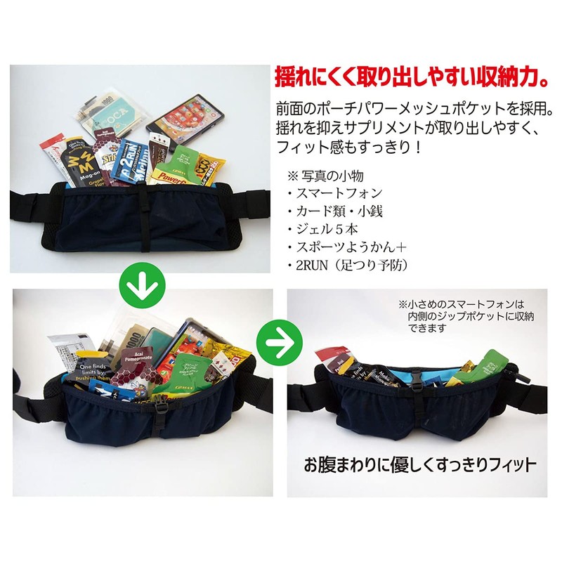 This YURENIKUI is for the race. [PRO Version] Power mesh pocket on the front pouch. It is easier to get things out of the front pouch than it is. No need to worry about swaying even when you run. The Pro version of YURENIKUI bottle pouch has improved storage capacity, so you don't have to worry about its weight. In addition to a 500ml plastic bottle on the back, it also has a power mesh pocket to hold jackets, gloves, towels, gels, and smartphones. It won't shake even if you put it too much. No need to worry about the weight. It will help you relieve the stress of your old bottle pouch. The popular YURENIKUI bottle pouch has been further evolved to provide a power mesh pocket for stress free while running out to take out supplements during races. One size fits all (Waist Size: 23.6 - 38.6 inches (60 - 98 cm); Front Pouch: Uses power mesh pocket, making it easier to remove supplements such as gels. (Bag Pocket with Power Mesh Material on Back Pocket) Storage capacity is more than ever before. You can put a 11.8 fl oz (350 ml) plastic bottle in your running environment. You will also find a pair of gloves, mochi towels, and a thin pocket windbreaker. Anyway, this power mesh bag is handy.