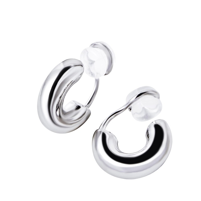 Yurielys Clip on Small Hoop Earrings for Women, Gold Hoop Fake Piercing Earrings Non Pierced Earrings Gold Silver (White Gold)