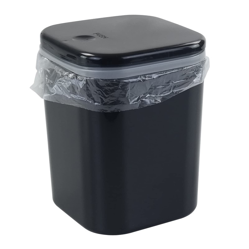Yuright 2L Mini Desktop Trash Bin with Push-button Lid, Black